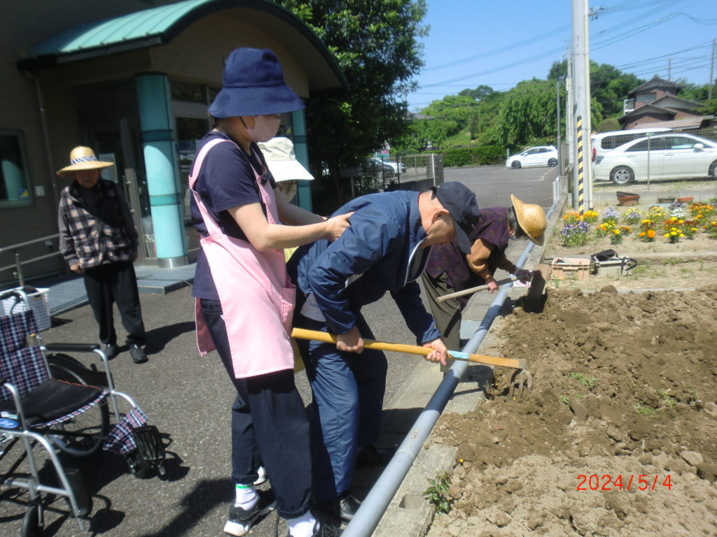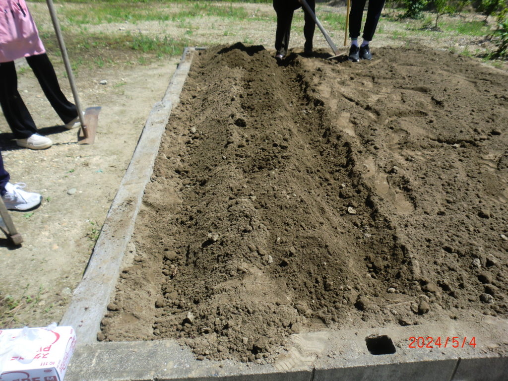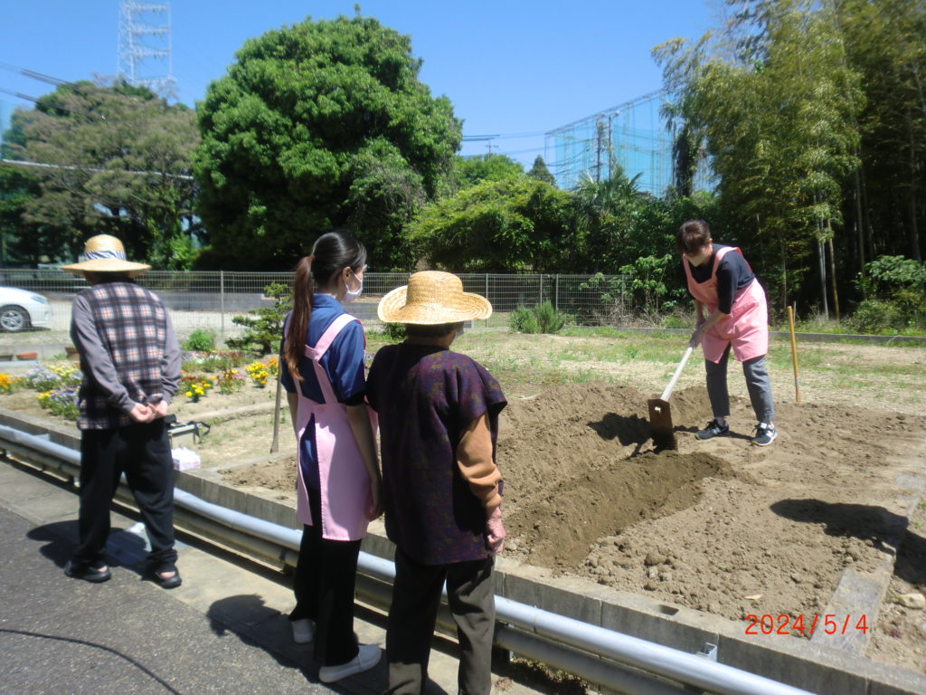 ゆーとぴあ高根の玄関前にある畑、今年は何を植えようかしら?
